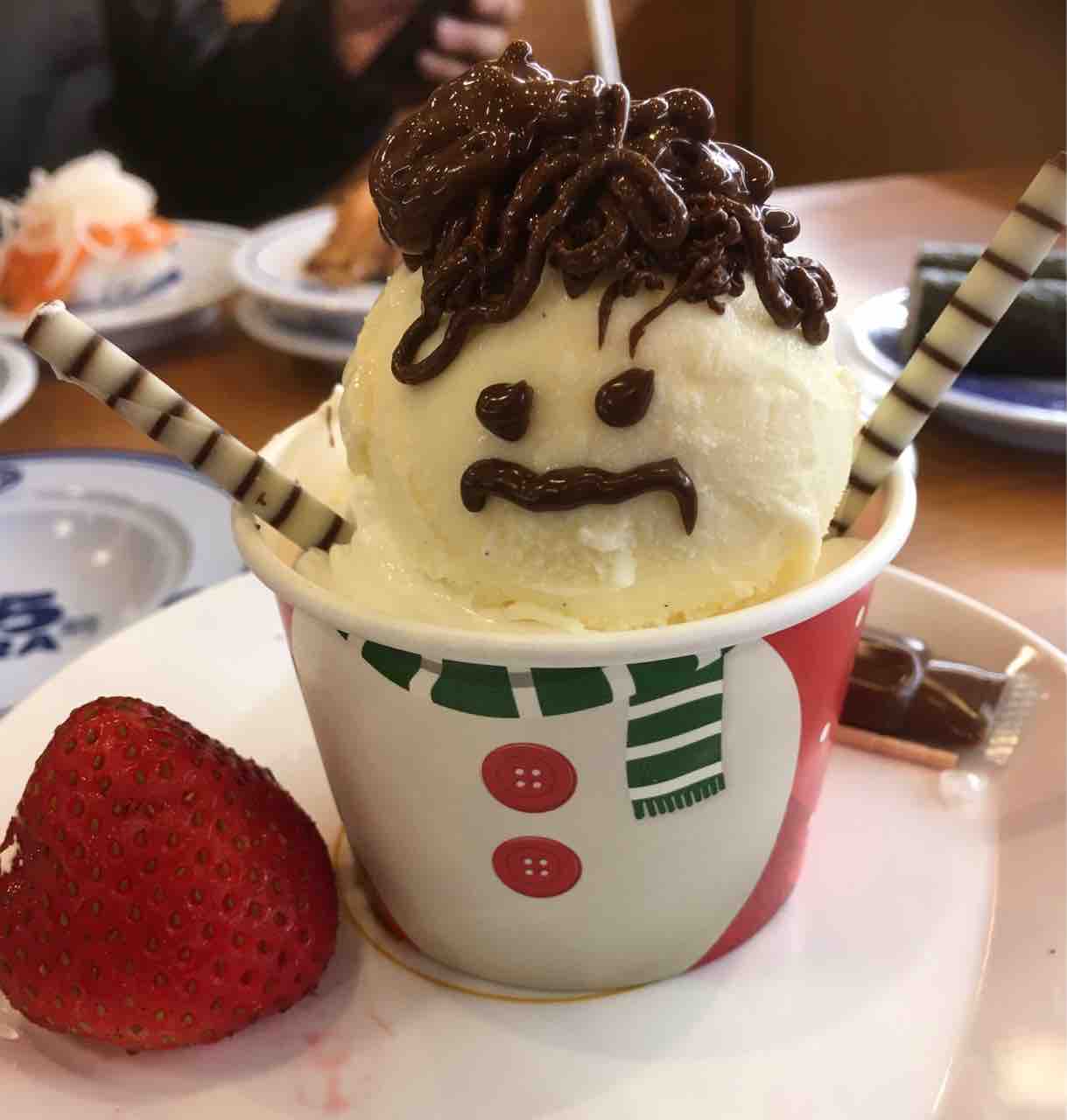 チョコペンで顔を描いて